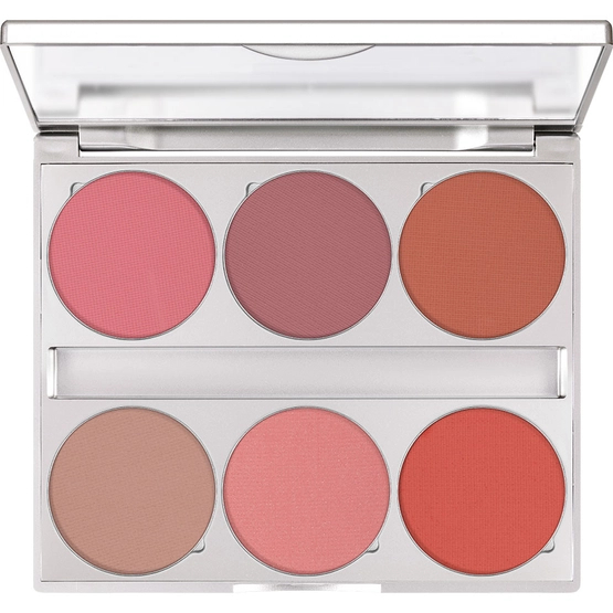 Róż aplikuj miękkim pędzlem do pudru, zaczynając od środkowej części policzków, delikatnie rozcierając produkt ku górze, w kierunku skroni.